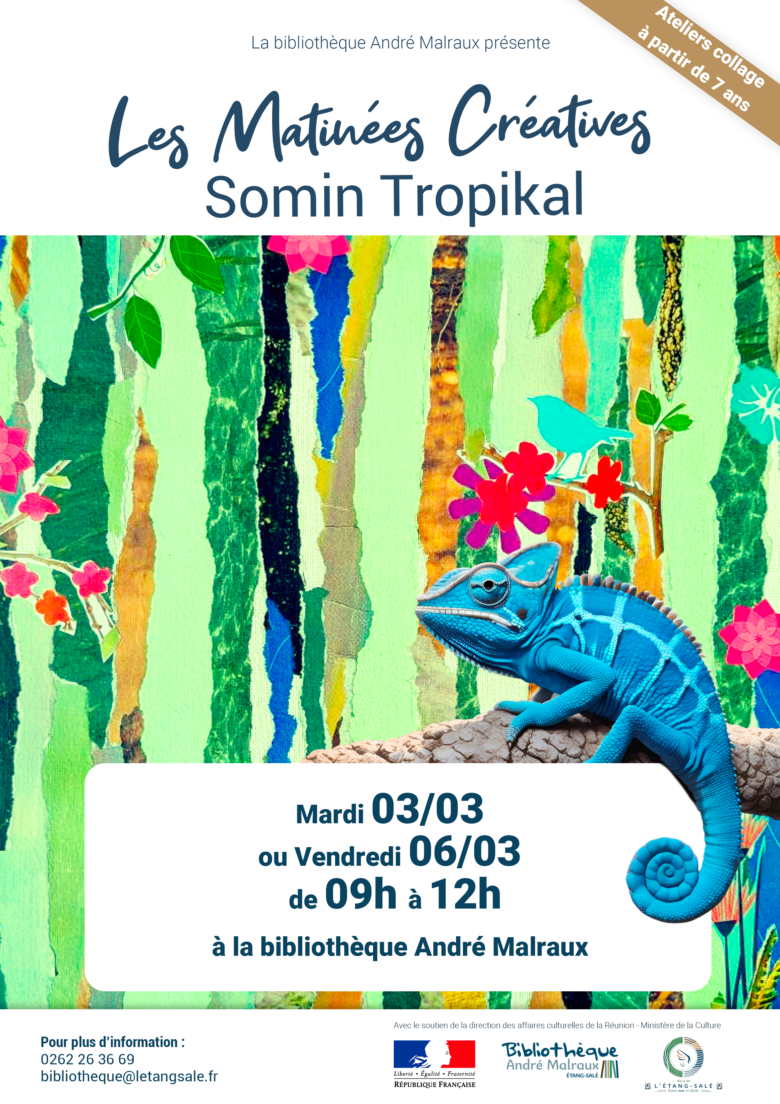 La bibliothèque vous invite à un atelier d’écriture animé par Florence Lebouteux, autrice réunionnaise et créatrice du jeu Dés Mots. 🔹 Objectif : (re)découvrir le plaisir d’écrire en s’amusant. 🔹 Principe : à partir de contraintes tirées au hasard (mots, thèmes, formes…), les participants rédigent un texte en plusieurs étapes courtes et ludiques. 🔹 Pour qui ? : enfants, ados, adultes – atelier intergénérationnel. 🔹 Quand ? jeudi ou samedi