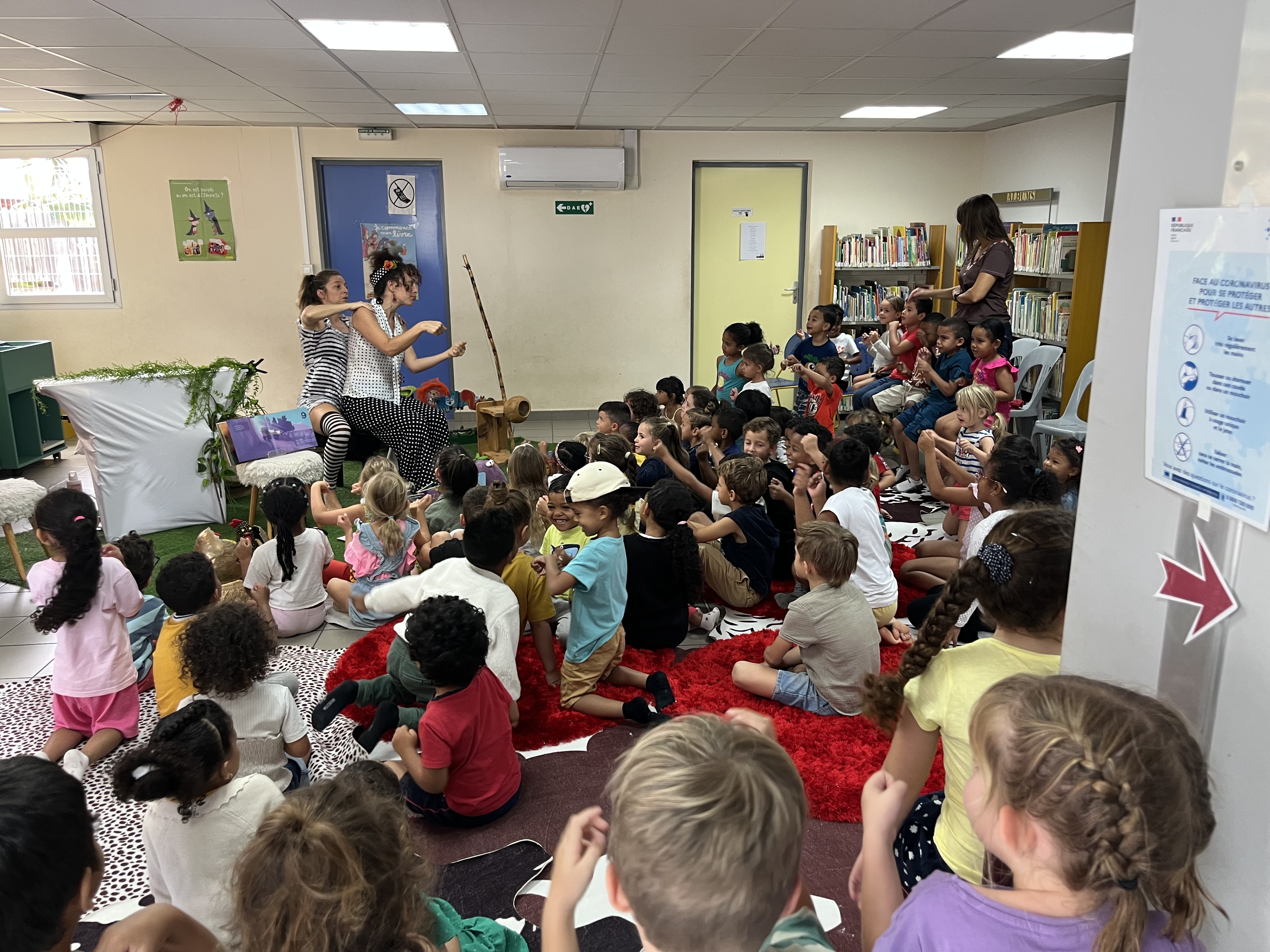 2 classes de maternelle de l'école Jeanne VISNELDA et une classe de CP de l'école Francis RIVIERE ont passé un moment très spécial à la bibliothèque. Elles ont participé au spectacle "Purée de lecture" de la compagnie: La petite scène qui bouge. Ce spectacle livresque a pour objectif de donner le goût de la lecture, l'envie de lire, rêver, imaginer;;; Un grand merci aux enseignants et accompagnateurs pour avoir permis cette belle rencontre entre les enfants et les livres. A très bientôt pour une nouvelle rencontre littéraire .